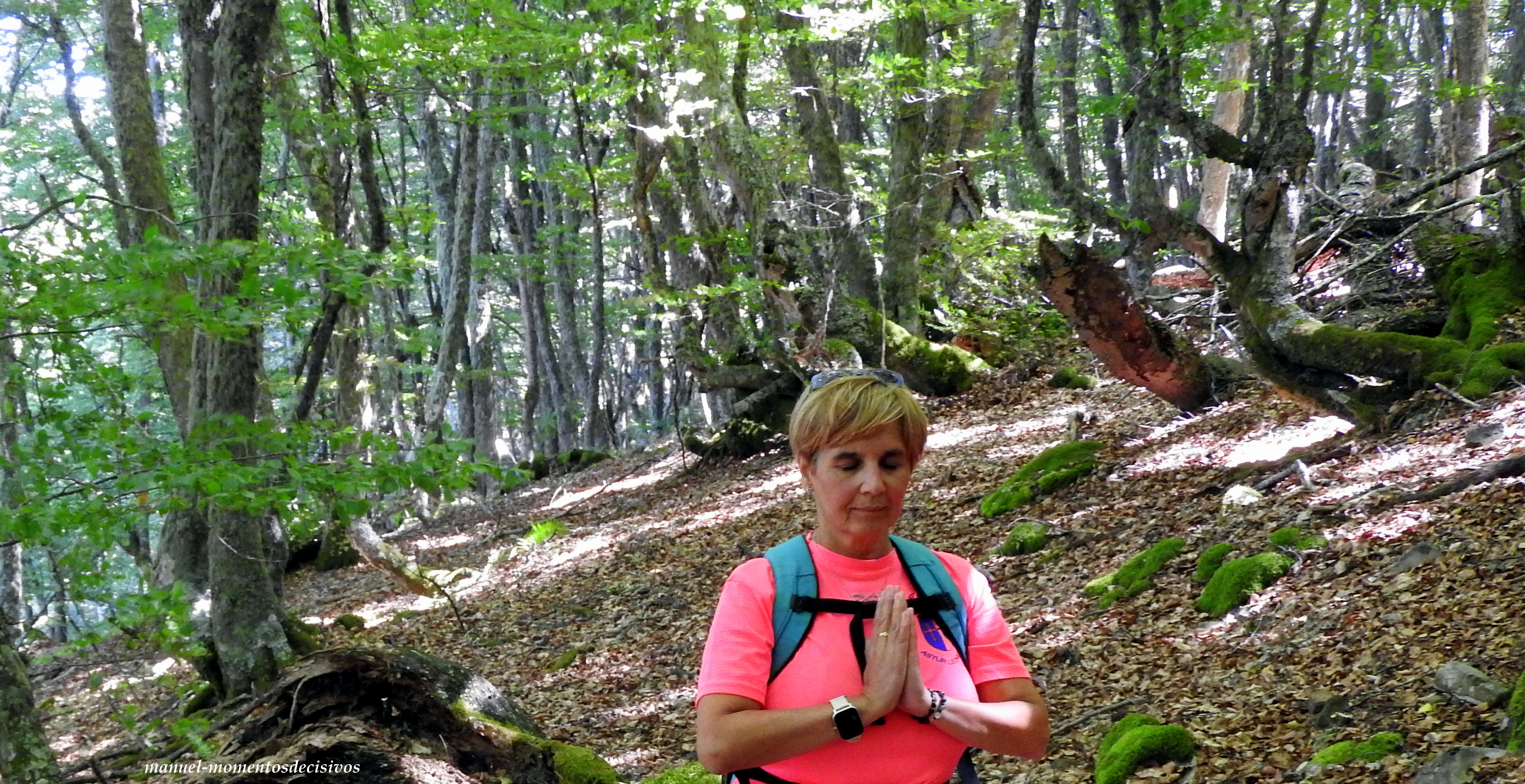 Manuel engullido por el bosque y en un claro del mismo aprovecho y observo su caminar hacia el reino del oso pardo cantábrico.